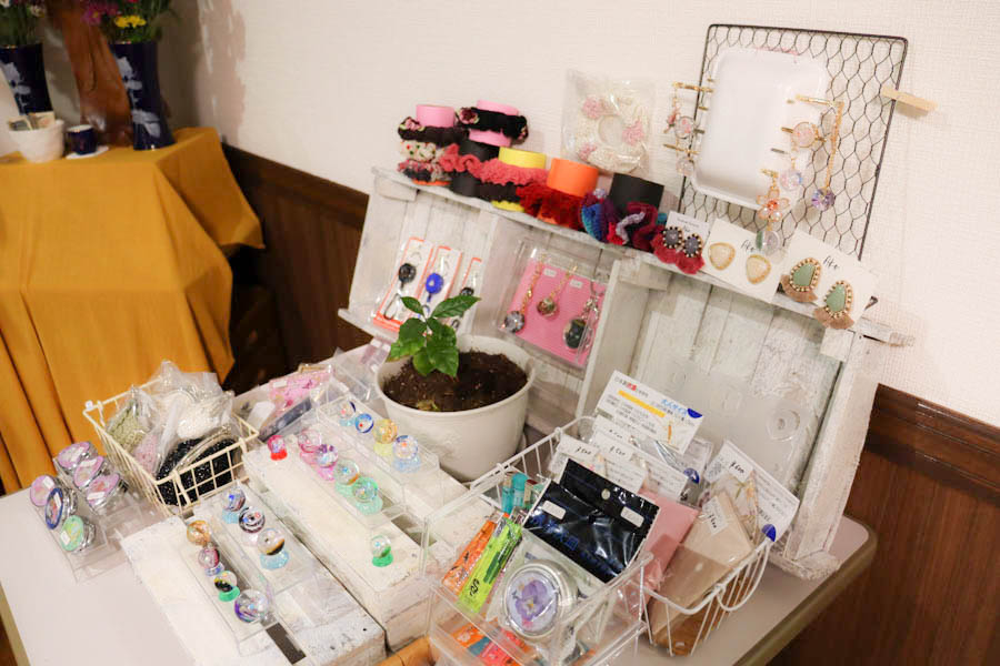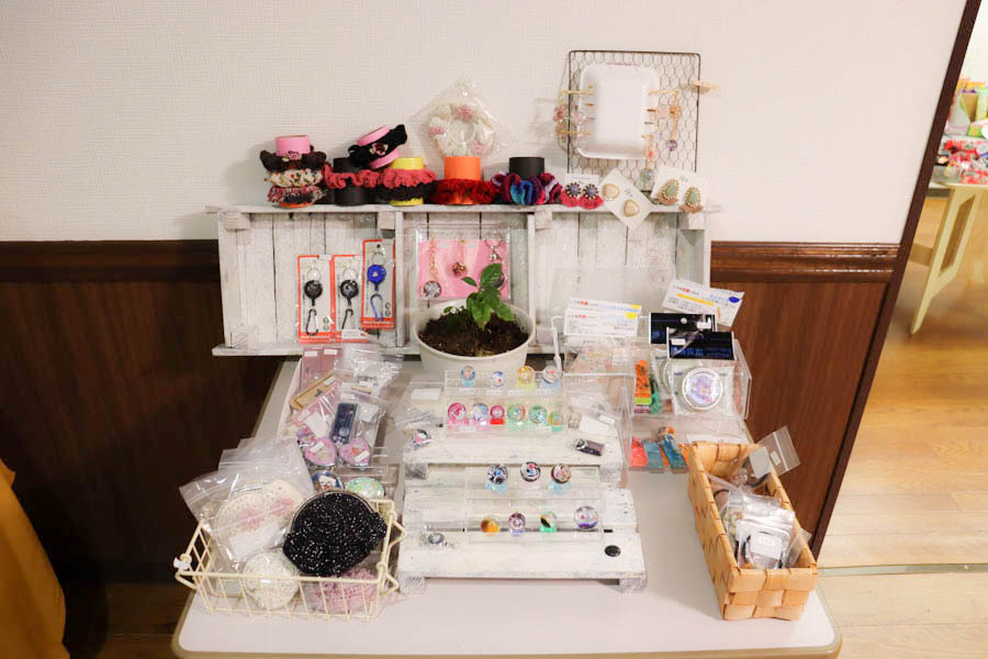 当施設では、ヘアゴムやティッシュカバー、アクセサリーなど様々な雑貨を手作りして販売しています。「こんなもの作ってみたい」などあればご要望をお受けいたします。得意なことをどんどん伸ばし、いっしょに作っていきましょう!